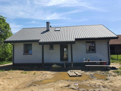 Realizacja domu całorocznego, mieszkalnego dla Inwestora prywatnego. Niewielki trzypokojowy domek będący znakomitą alternatywą dla mieszkania w bloku.